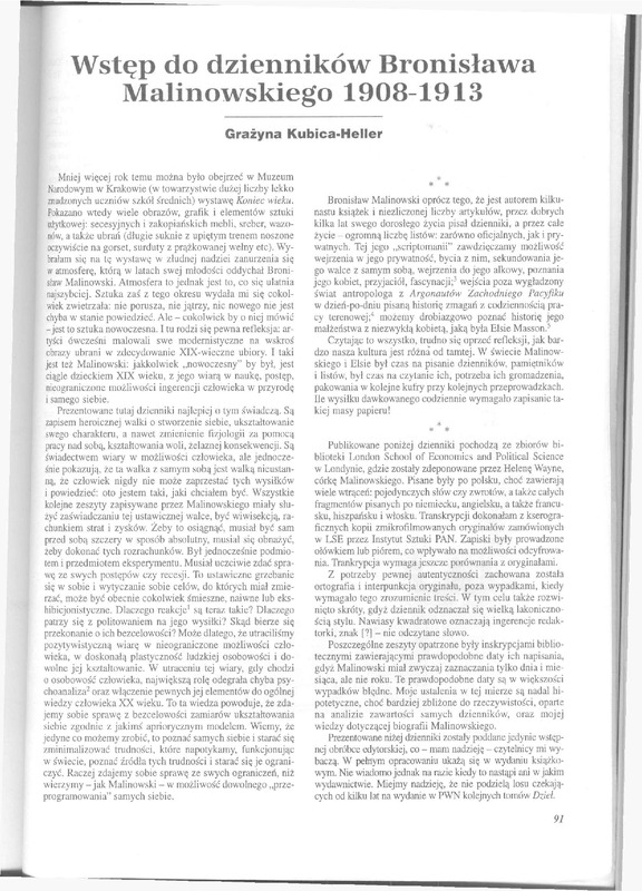 Wstęp do dzienników Bronisława Malinowskiego 1908-1913 / Polska Sztuka Ludowa - Konteksty 1998 t.52 z.1