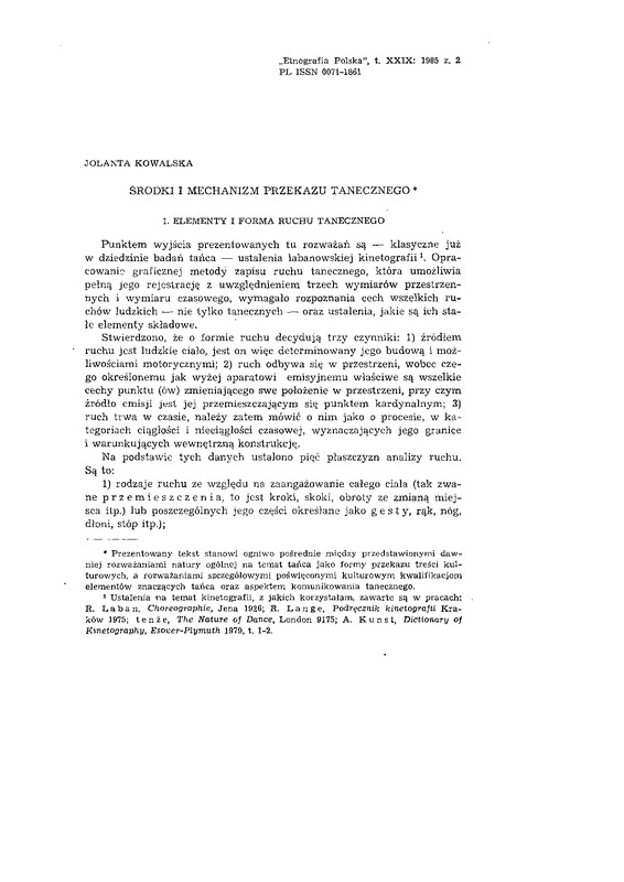 Środki i mechanizm przekazu tanecznego / ETNOGRAFIA POLSKA 1985 t.29 z.2