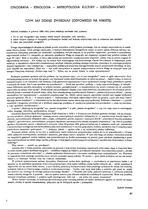 O ankiecie / Polska Sztuka Ludowa - Konteksty 1981 t.35 z.2