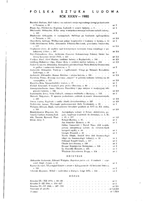 Spis treści R. 1980; Contents / Polska Sztuka Ludowa - Konteksty 1981 t.35 z.1