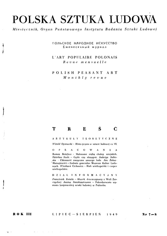 Spis treści i strony tytułowe / Polska Sztuka Ludowa - Konteksty 1949 t.3 z.7-8