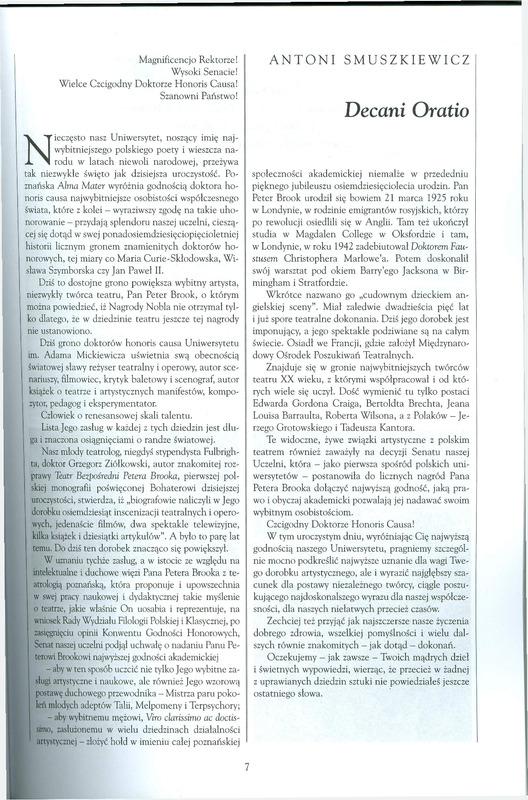 sytetu i m . A d a m a M i c k i e w i c z a postanowił n a d a ć Panu Peterowi B r o o k o w i , w i e l k i e m u twórcy