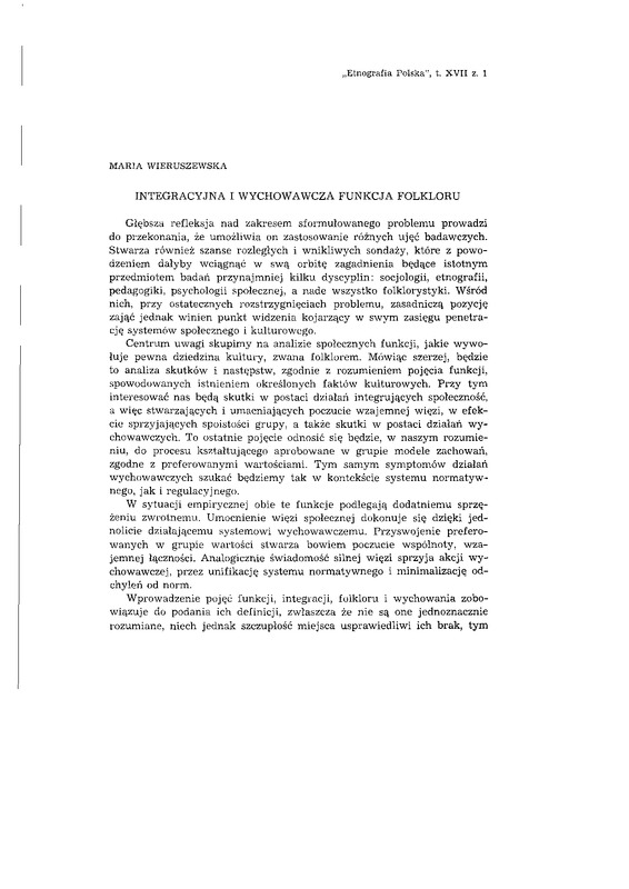 Integracyjna i wychowawcza funkcja folkloru / ETNOGRAFIA POLSKA 1973 t.17 z.1