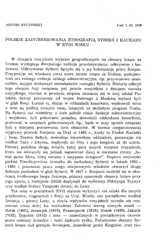 Polskie zainteresowanie etnografią Syberii i Kaukazu w XVIII wieku / LUD 1979 t.63