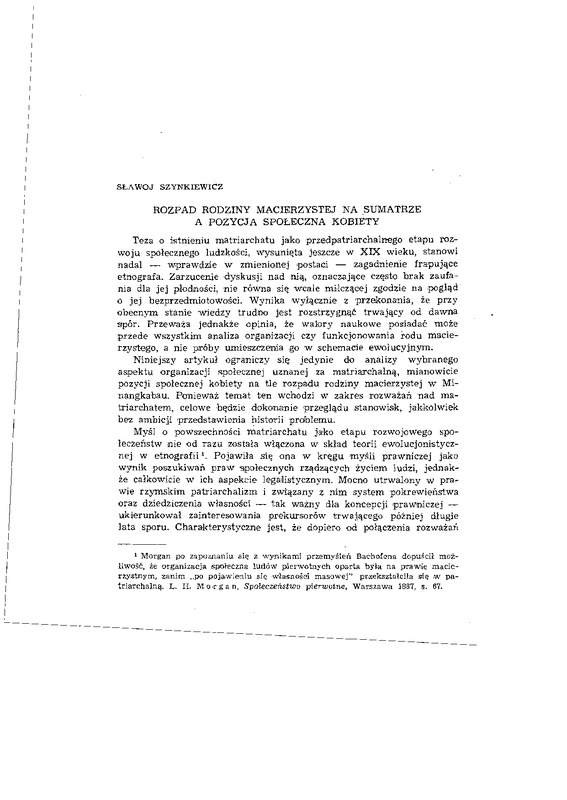pozycji społecznej k o b i e t y na t l e rozpadu r o d z i n y macierzystej w M i nangkabau. Ponieważ temat t e n wchodzi w zakres rozważań n a d m a