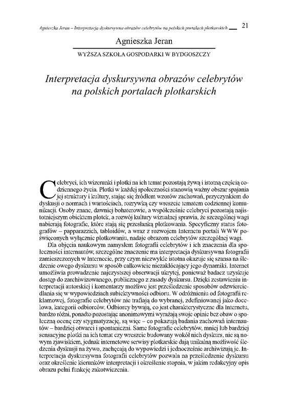 Interpretacja dyskursywna obrazów celebrytów na polskich portalach plotkarskich / Homo interneticus: etnograficzne wędrówki w głąb sieci