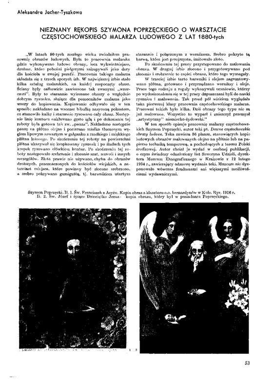 Nieznany rękopis Szymona Poprzęckiego o warsztacie częstochowskiego malarza ludowego z lat 1880-tych / Polska Sztuka Ludowa - Konteksty 1973 t.27 z.1