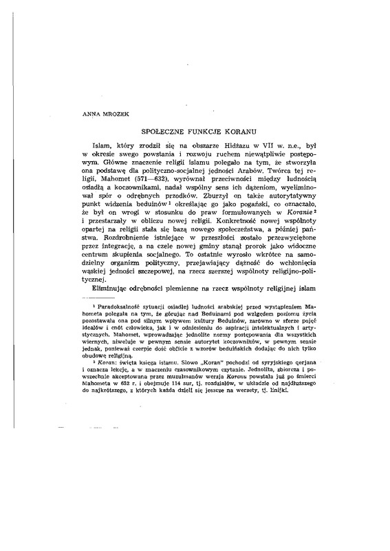 Społeczne funkcje Koranu / ETNOGRAFIA POLSKA 1966 t.10