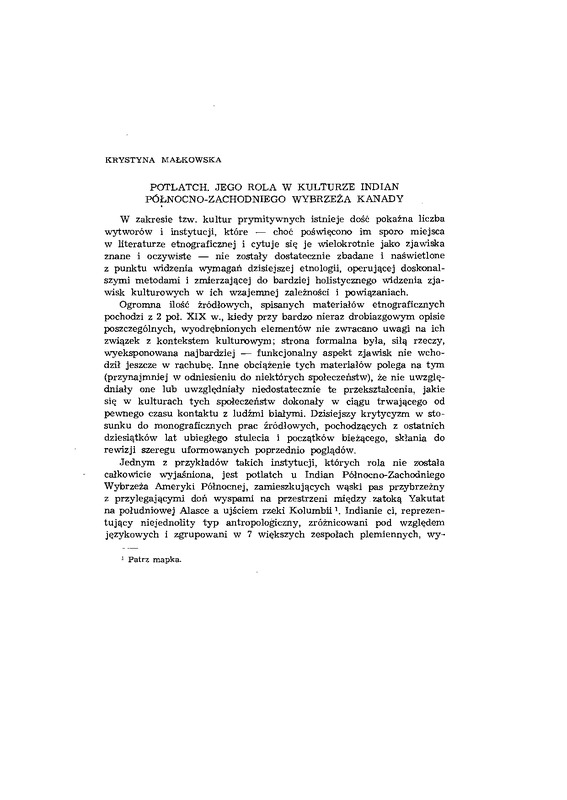 Potlatch. Jego rola w kulturze Indian Północno-Zachodniego Wybrzeża Kanady / ETNOGRAFIA POLSKA 1966 t.10