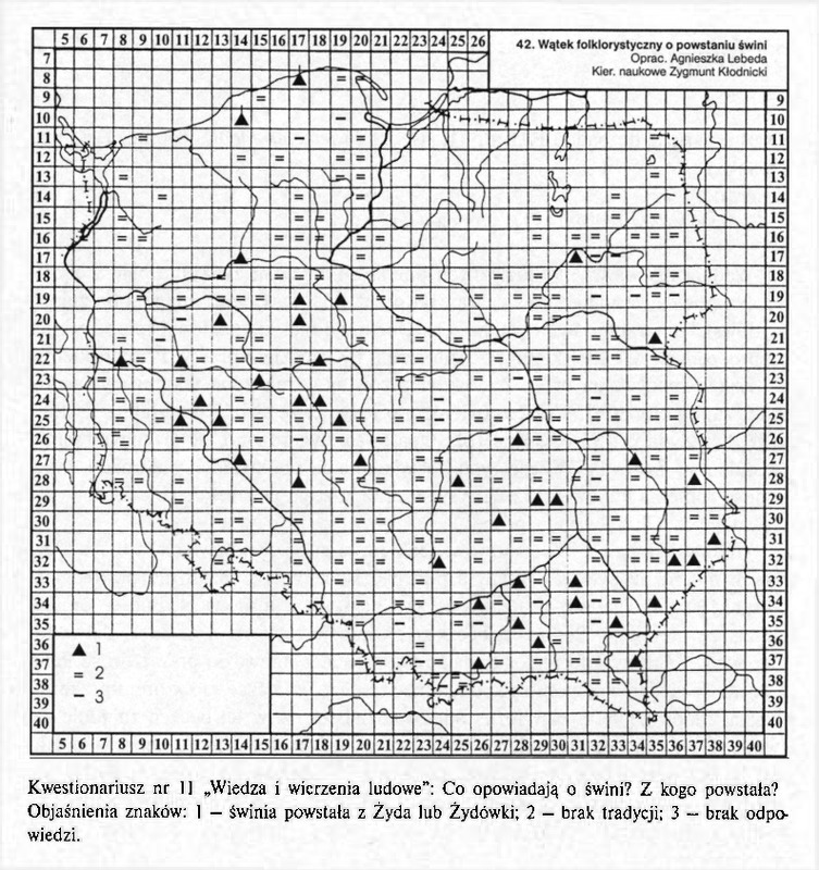 Objaśnienia znaków: 1 — świnia powstała z Żyda lub Ż y d ó w k i ; 2 — brak tradycji; 3 — brak odpo