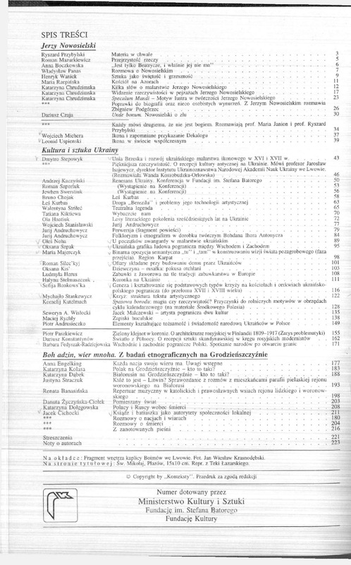 Spis treści / Polska Sztuka Ludowa - Konteksty 1996 t.50 z.3-4