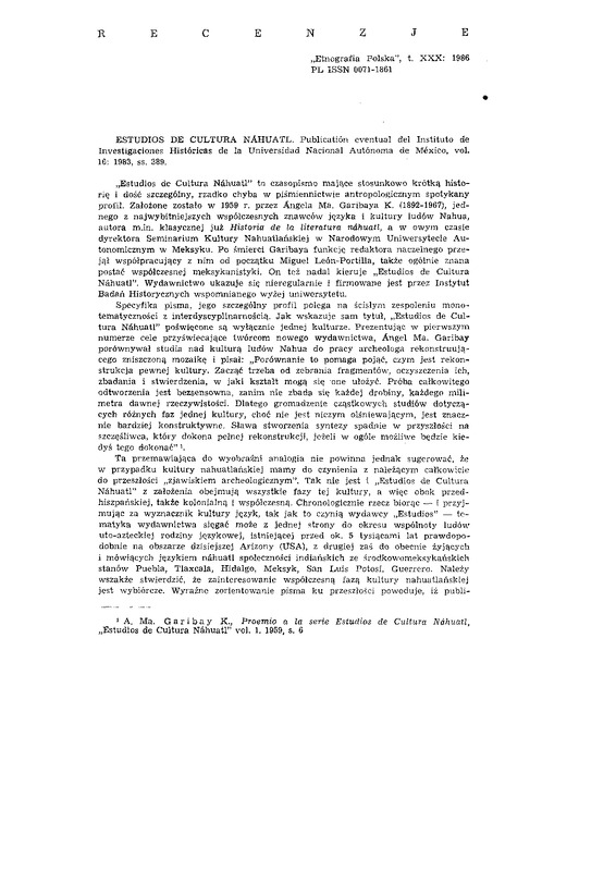 „ E s t u d i o s de C u l t u r a N á h u a t l " to czasopismo m a j ą c e s t o s u n k o w o