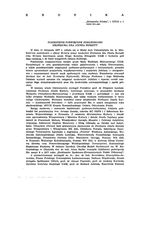 Kronika / ETNOGRAFIA POLSKA 1979 t.23 z.1
