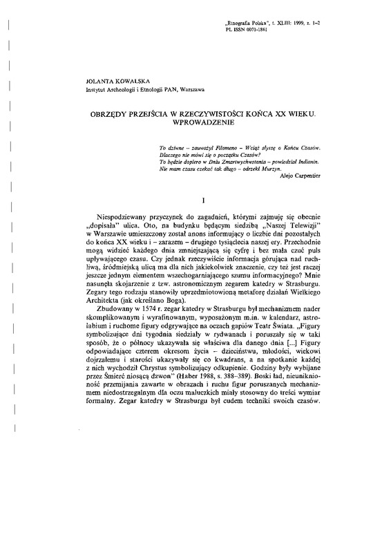 Obrzędy przejścia w rzeczywistości końca XX wieku. Wprowadzenie / ETNOGRAFIA POLSKA 1999 t.43