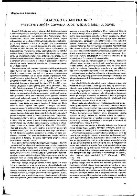 Dlaczego Cygan kradnie? Przyczyny zróżnicowania ludzi według biblii ludowej / Polska Sztuka Ludowa - Konteksty 1992 t.46 z.1