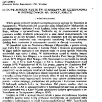 L U D O W E ASPEKTY K U L T U ŚW. STANISŁAWA ZE SZCZEPANOWA