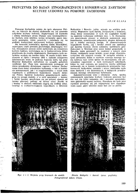 Przyczynek do badań etnograficznych i konserwacji zabytków kultury ludowej na Pomorzu Zachodnim / Polska Sztuka Ludowa - Konteksty 1954 t.8 z.3