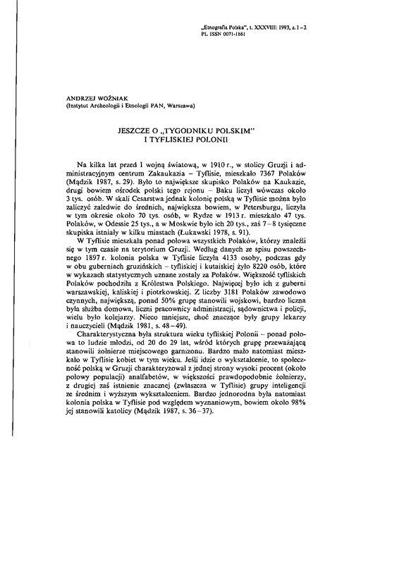 Jeszcze o "Tygodniku Polskim" i tyfliskiej Polonii / ETNOGRAFIA POLSKA 1994 t.38