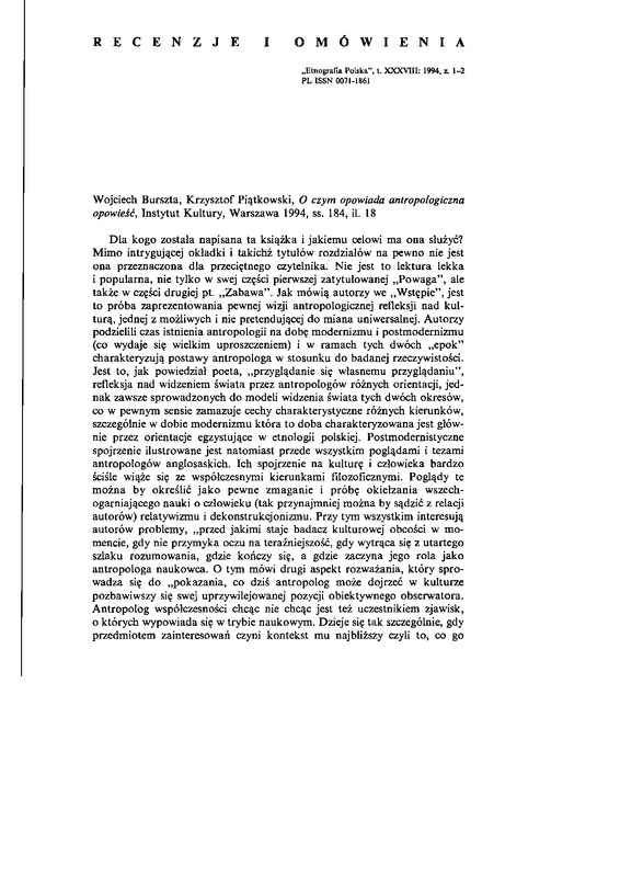 Recenzje i omówienia / ETNOGRAFIA POLSKA 1994 t.38