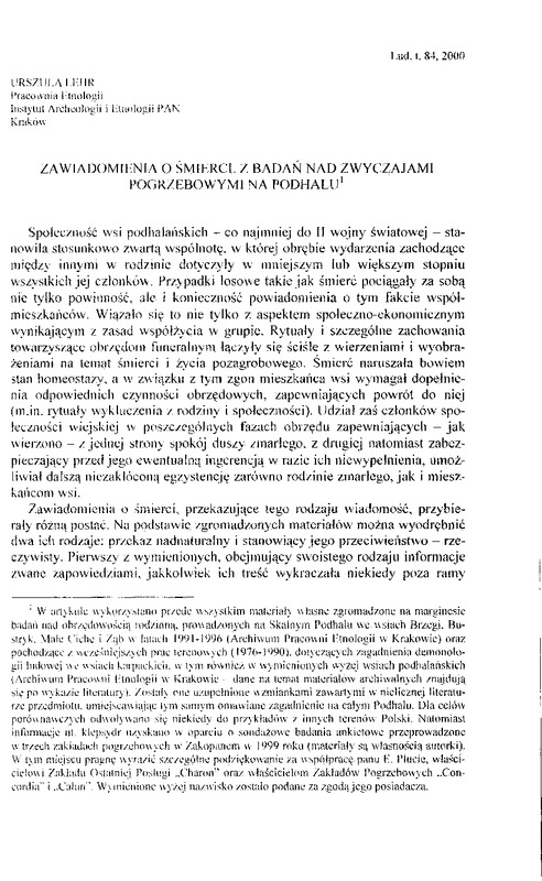 Zawiadomienia o śmierci / LUD 2000 t.84