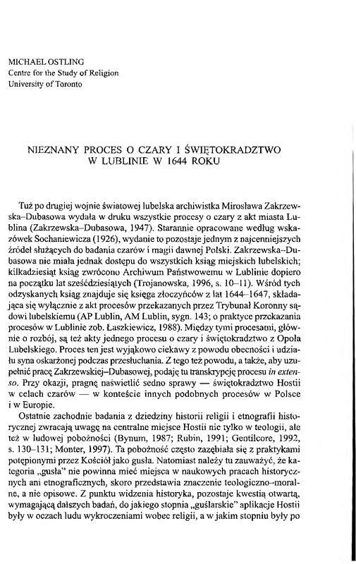 nieznany proces o czasry i świętokradztwo w Lublinie w 1644 roku / LUD 2005 t.89