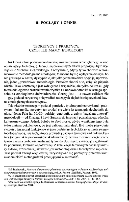 Teoretycy i praktycy, czyli ile mamy etnologii? / LUD 2005 t.89