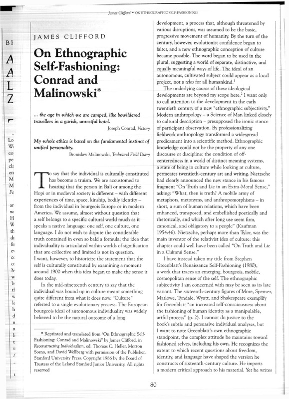 James Clifford • ON ETHNOGRAPHIC SELF-FASHIONING
