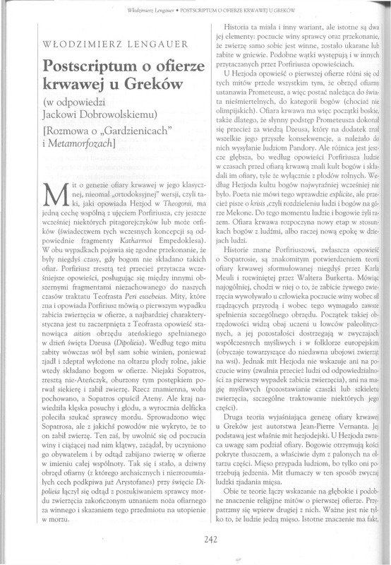 Włodzimierz Lengauer • POSTSCRIPTUM O OFIERZE KRWAWE] U GREKÓW