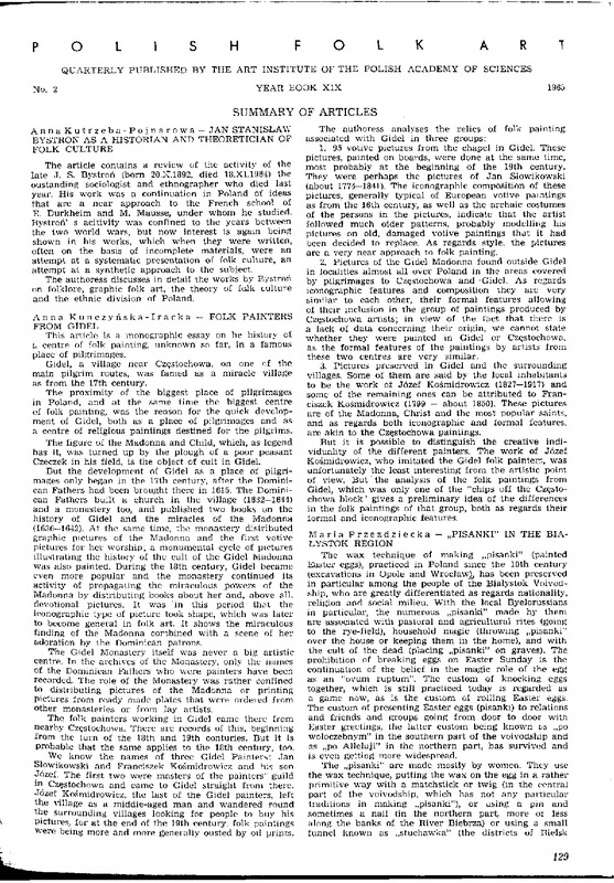 Summary of articles/ Polska Sztuka Ludowa - Konteksty 1965 t.19 z.2
