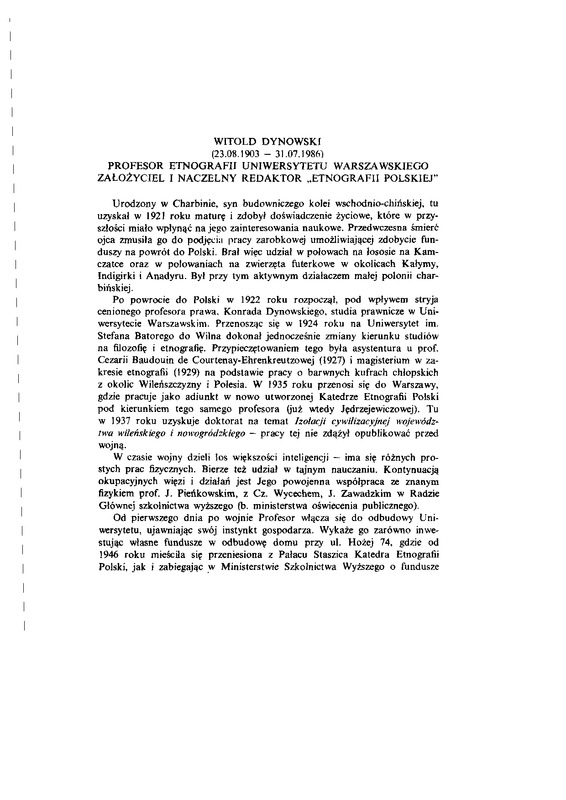 Witold Dynowski (23.08.1903-31.07.1986). Profesor etnografii Uniwersytetu Warszawskiego. Założyciel i naczelny redaktor "Etnografii Polskiej" / ETNOGRAFIA POLSKA 1987 t.31 z.1