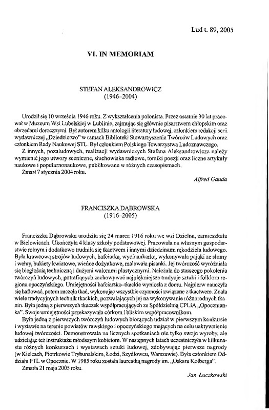 nin. Była jedną z pierwszych tkaczek współpracujących ze Spółdzielnią CPLiA „Opocznianka”. Swoje umiejętności przekazywała córkom i bliskim współpracownikom.
