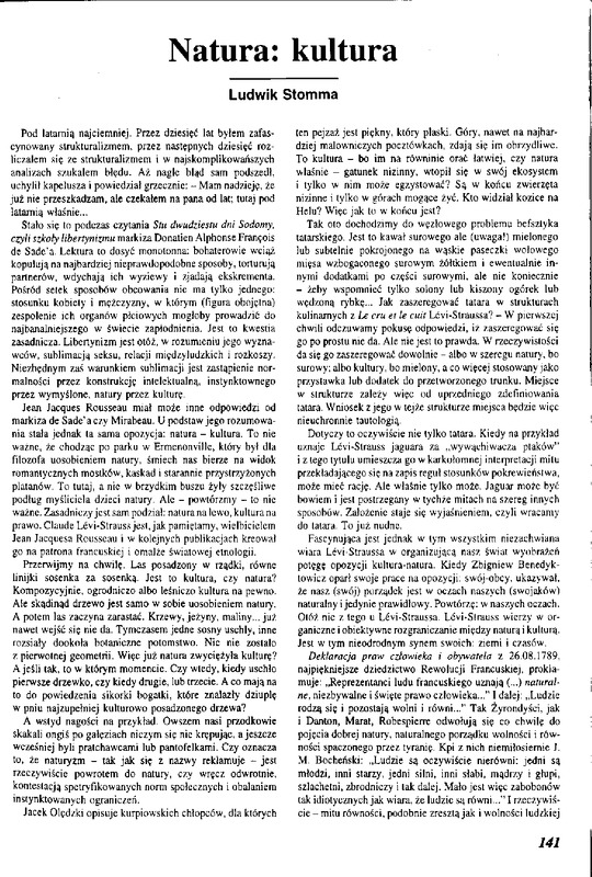 nia stała jednak ta sama opozycja: natura - kultura. To nie