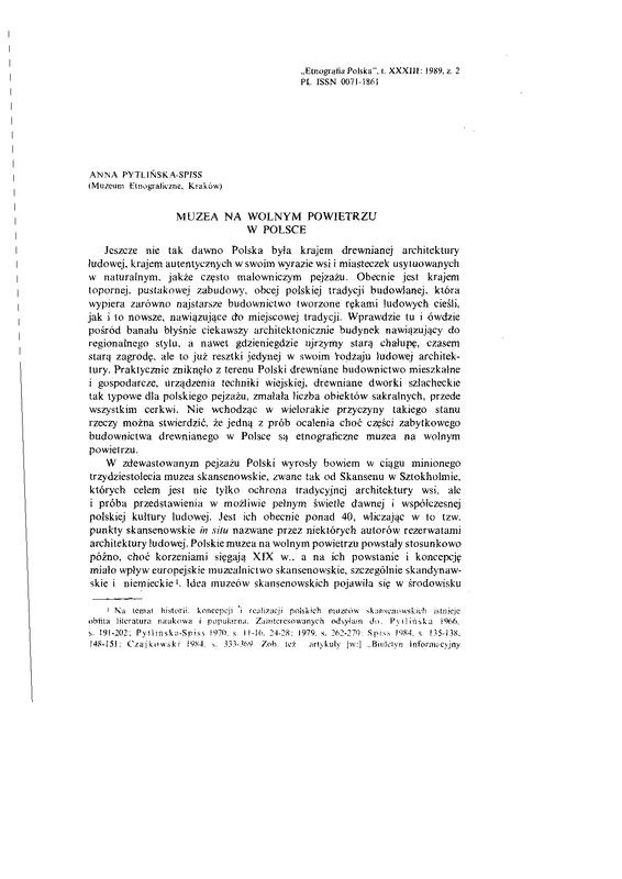 Muzea na wolnym powietrzu w Polsce / ETNOGRAFIA POLSKA 1989 t.33 z.2