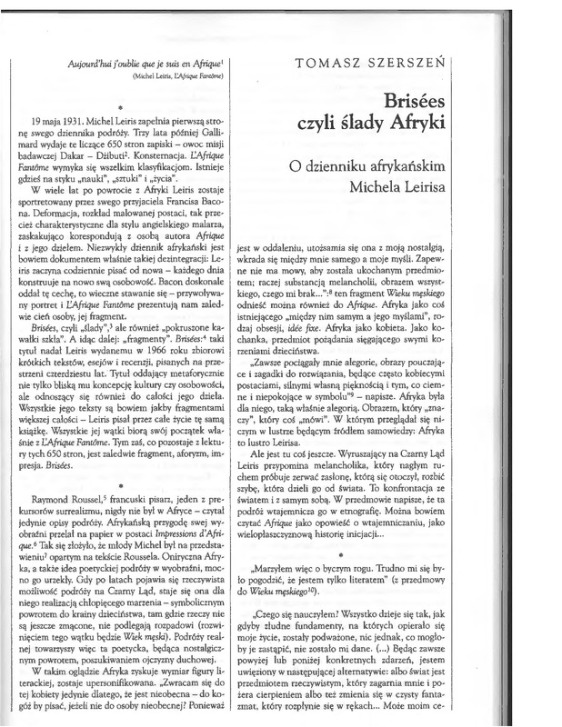 śnie z "LAfrique Fant6me. Tym zaś, co pozostaje z lektury tych 650 stron, jest zaledwie fragment, aforyzm, impresja. Brisees.