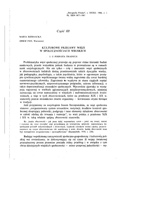 Kulturowe przejawy więzi w społecznościach wiejskich / ETNOGRAFIA POLSKA 1988 t.32 z.1