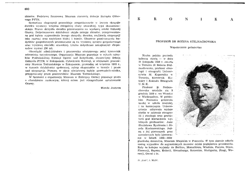 badawcze w zakresie etnografii skierowane były na Kaszuby, gdzie prof. Stelmachowska