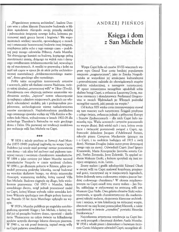 gdy Munthe kształtował San Michele. Budując i pisząc jednocześnie, lekarz stawał się "architektem"