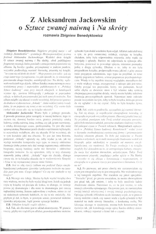 Z Aleksandrem Jackowskim o "Sztuce zwanej naiwną" i "Na skróty" / Polska Sztuka Ludowa - Konteksty 1995 t.49 z.3-4