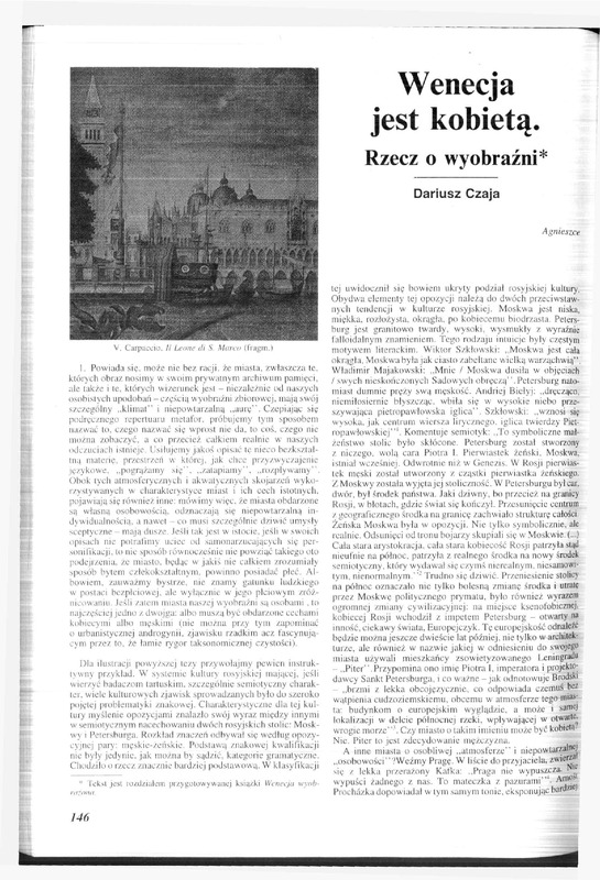 " Wnikliwy przegląd różnych obrazów Wenecji w literaturze rosyjskiej -od