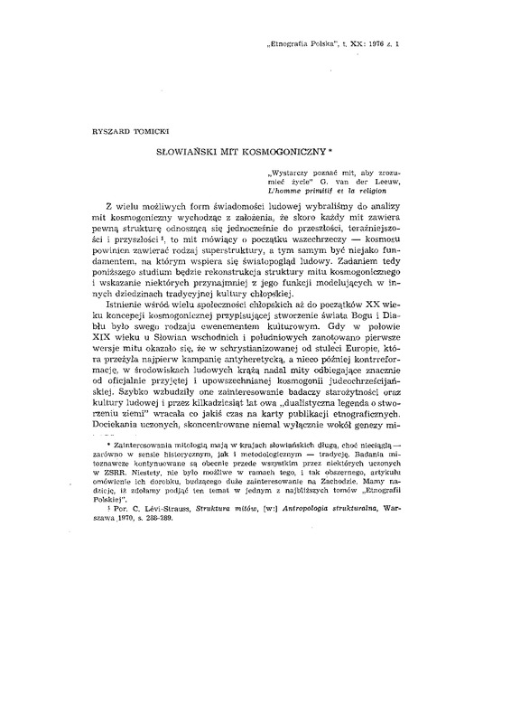 Słowiański mit kosmogoniczny / ETNOGRAFIA POLSKA 1976 t.20 z.1
