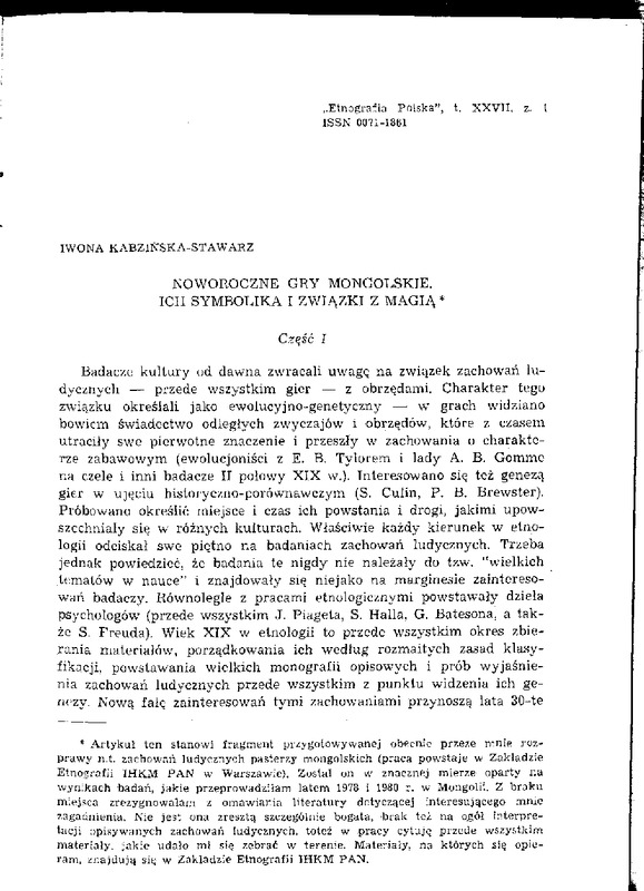 Noworoczne gry mongolskie. Ich symbolika i związki z magią / ETNOGRAFIA POLSKA 1983 t.27 z.1