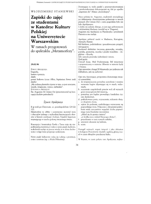 Włodzimierz Staniewski » ZAPISKI DO ZAJĘĆ ZE STUDENTAMI W KATEDRZE KULTURY POLSKIE] NA UNIWERSYTECIE WARSZAWSKI