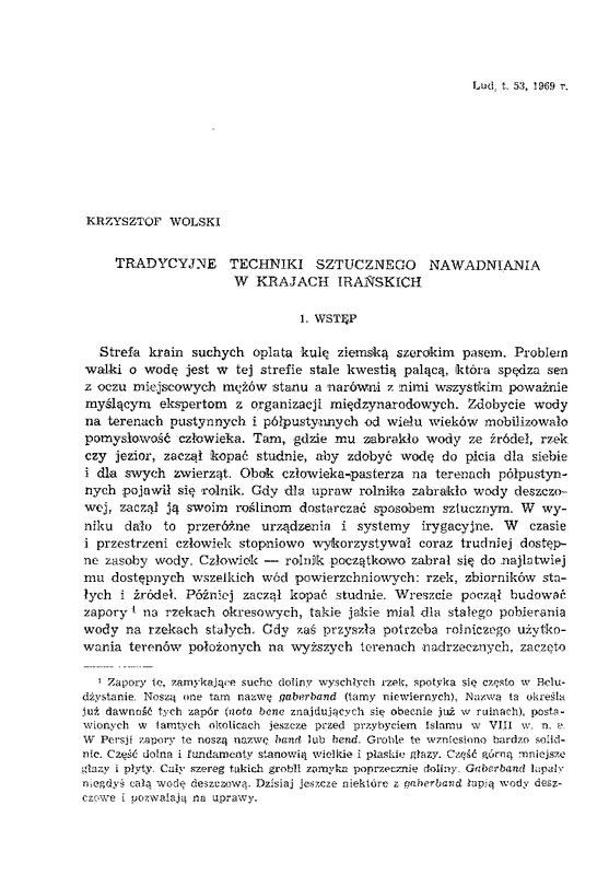 Tradycyjne techniki sztucznego nawadniania w krajach irańskich / LUD 1969 t.53