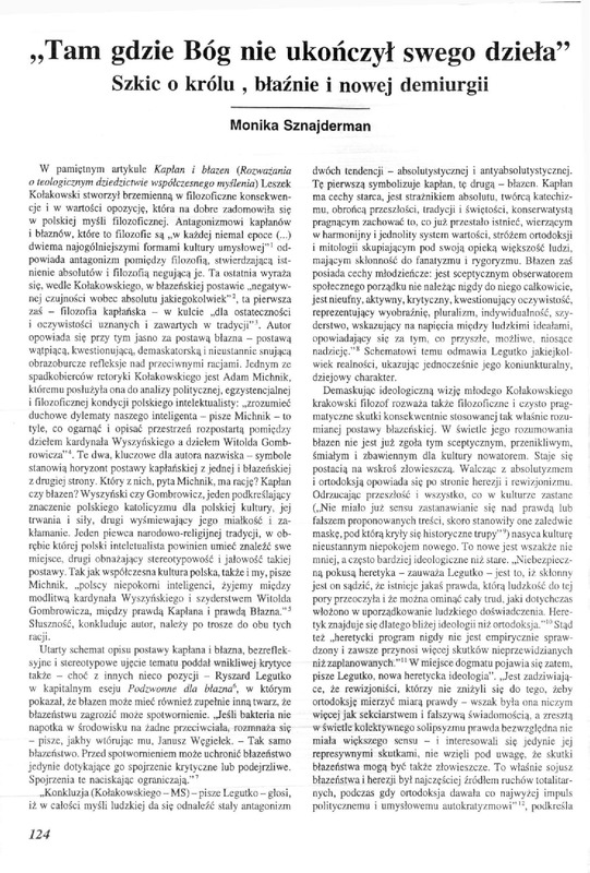 Gombrowicza, między prawdą Kapłana i prawdą Błazna."
