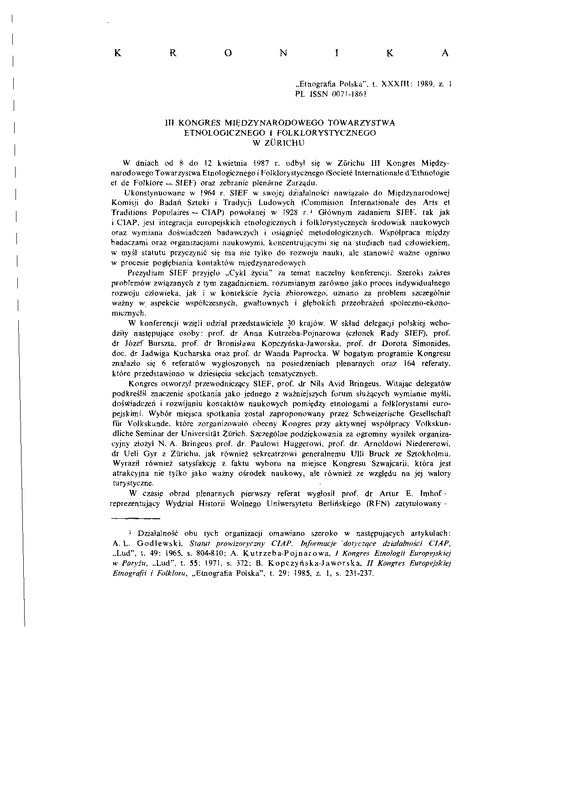 Kronika / ETNOGRAFIA POLSKA 1989 t.33 z.1