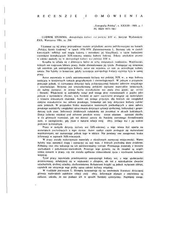 ETNOGRAFIA POLSKA 1989 t.33 z.1, s.267-313