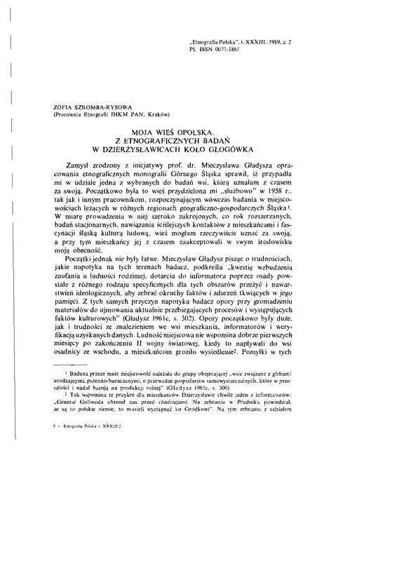 Moja wieś opolska. Z etnograficznych badań w Dzierżysławicach koło Głogówka / ETNOGRAFIA POLSKA 1989 t.33 z.2