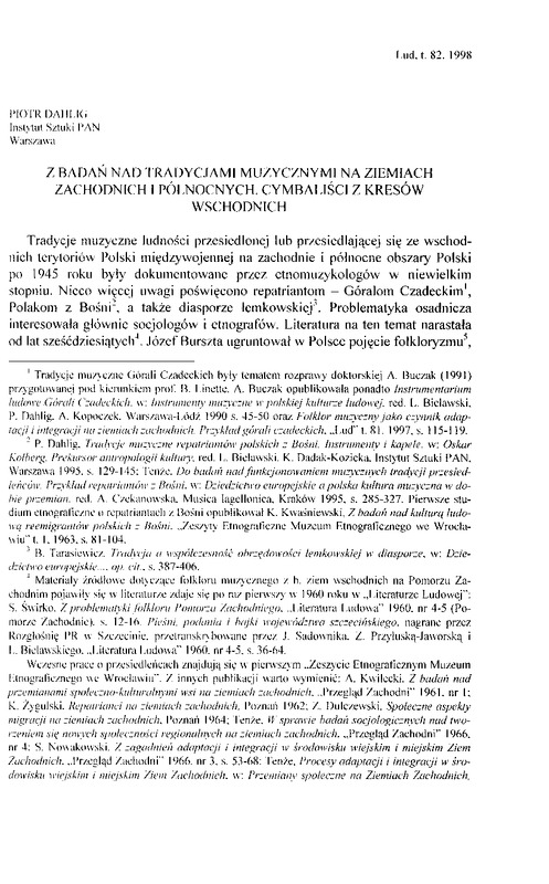 Z badań nad tradycjami muzycznymi na Ziemiach Zachodnich i Północnych / LUD 1998 t.82