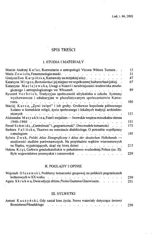 Spis treści / LUD 2002 t.86