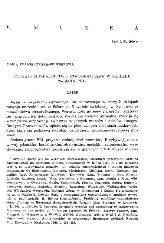 Uderzające jest, iż bardzo rzadko poświęca się u nas uwagę teoretycznym problemom współczesnego muzealnictwa etnograficznego 6, które stanęło obecnie wobec nowych zagadnień metodologicznych, wymagających